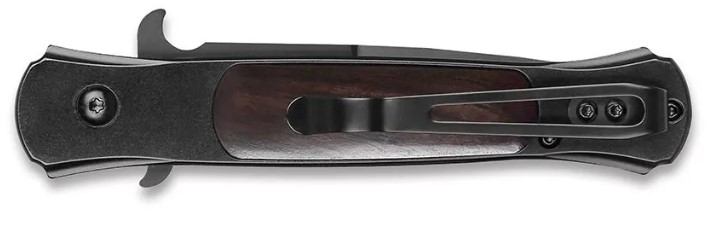 Рукоятка модели G707B сделана из нержавеющей стали и имеет деревянные вставки. На рукоятке располагается специальная прижимная клипса, за которую можно крепить нож к ремню или другой экипировке. Это обеспечивает удобство ношения и быстроту доступа к инструменту. Эргономичная форма рукоятки обеспечивает удобный и надежный хват, что важно при длительном использовании.