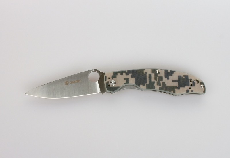 Складной нож Ganzo G732 с первого взгляда привлекает внимание дизайном. У него широкий клинок необычной формы с отверстием круглой формы, которое выполняет роль шпенька для открывания. Рукоятка подогнана под форму руки, а ее цвет покупатель выбирает из четырех возможных вариантов. Но внимания заслуживает не только дизайн ножа, но и материалы, из которых он изготовлен.