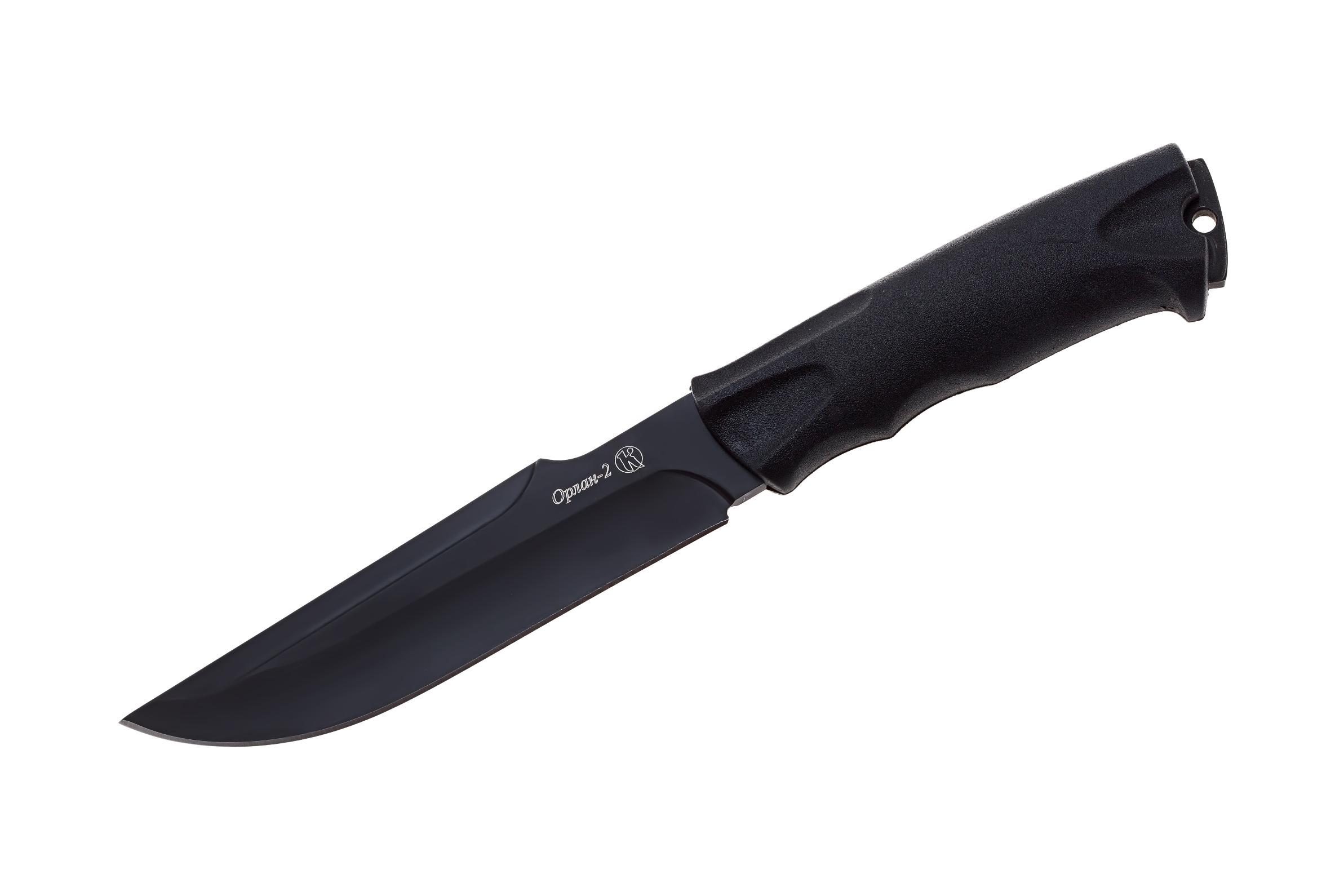 Нож «Орлан 2», выпускаемый предприятием «Кизляр» может пригодиться как охотникам и туристам, так и военнослужащим для выполнения хозяйственно-бытовых работ в полевых условиях. Нож не относится к гражданскому холодному оружию и прошел сертификацию как разделочный. Возможно также применение этого ножа для защиты от агрессивных диких животных или человека. Длина ножа «Орлан» составляет 275 мм, а размеры однолезвийного клинка – 145х35х4,2 мм. Клинок имеет форму, близкую к копьеобразной, основное лезвие образуется длинными вогнутыми спусками, а голомени клинка имеют усиливающие ребра жесткости. В корневой части клинка со стороны обуха сделан упор для большого пальца, позволяющий более удобно использовать нож при резке. Кроме этого, функции крестовины, предохраняющей руку при колющих ударах выполняет специальный выступ на рукояти со стороны лезвия. Клинок «Орлана» изготавливается из стали AUS8. Твердость достигает 55-57 HRC, а на клинок наносится темное антибликовое покрытие. Рукоять изготавливается из резинопластика Elastron G, который напрессовывается на проходящий по всей длине рукоятки хвостовик клинка. Комплектуется нож «Орлан» поясными кожаными ножнами.
