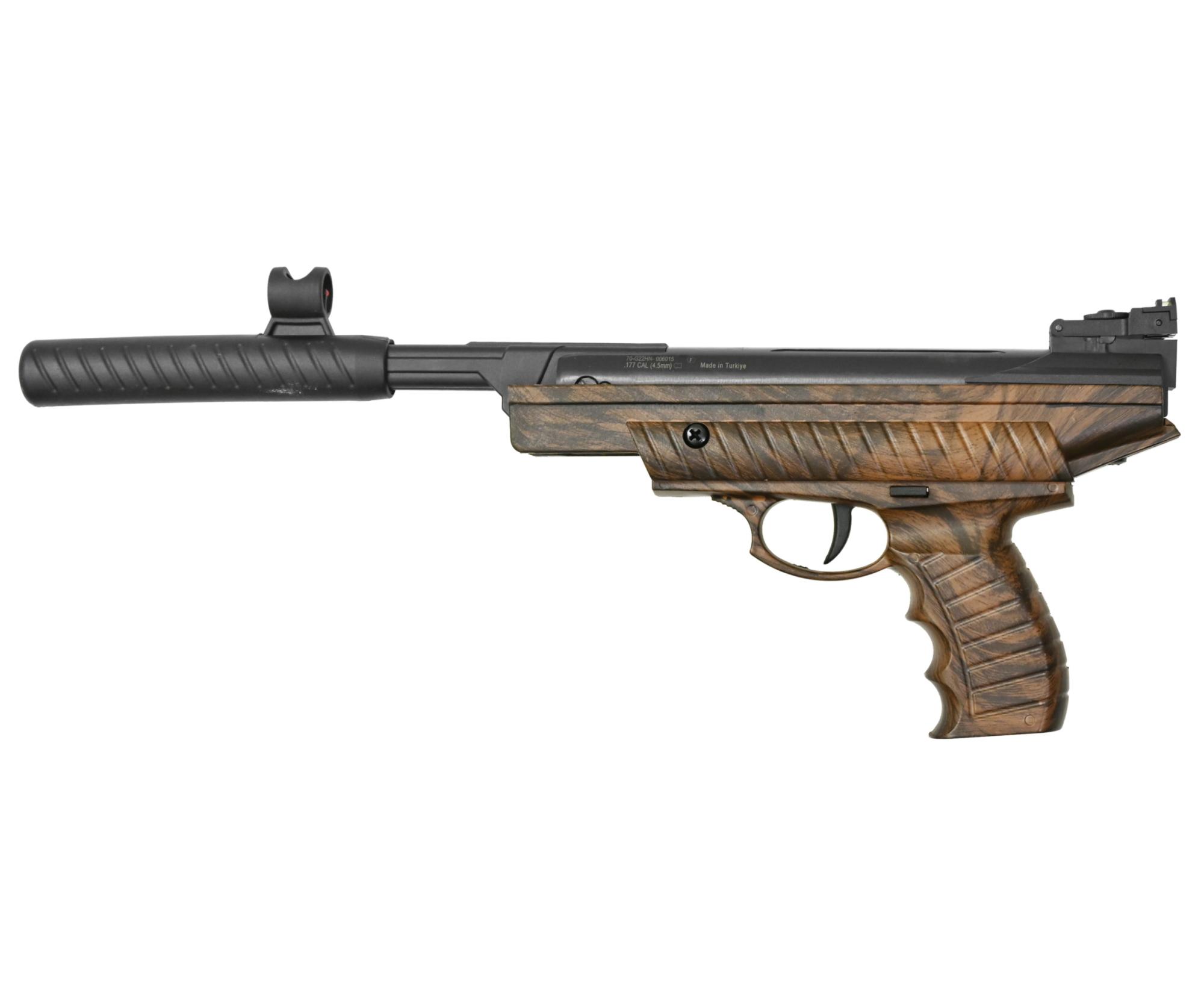 Изготовители из Hatsan в качестве материала для создания ствола используют сталь, а корпус выполняется из высокопрочного пластика с деревянной окраской.