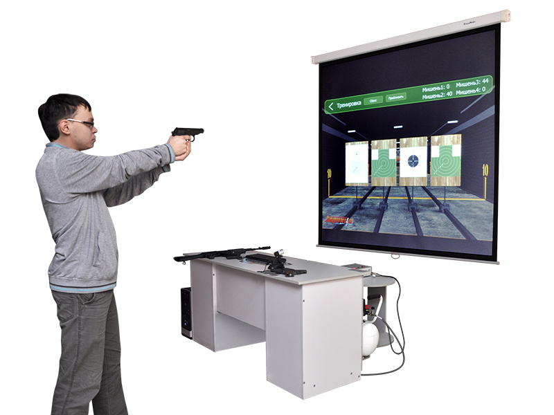 Интерактивный лазерный стрелковый тренажер с отдачей представляет собой учебный тир и разработан для обучения профессиональным навыкам стрельбы из массогабаритных макетов пистолета Макарова и автомата Калашникова с отдачей при стрельбе очередями и одиночными выстрелами. Лазерный стрелковый тренажер предназначен для проведения практических занятий по военным дисциплинам в образовательных учреждениях, для обучения и совершенствования навыков прицеливания, а также для регулярных тренировочных и экзаменационных занятий специалистов по стрельбе из массогабаритных макетов оружия без расхода боеприпасов по статическим, динамическим подвижным мишеням, а также видеоупражнениями. Результаты стрельбы суммируются и выдается общее количество баллов и число выстрелов. Все произведенные выстрелы заносятся в базу данных. Для каждого режима стрельбы предусмотрена возможность архивации и документирования результатов с последующим выводом на печать в виде отчетов. Таким образом, преподаватель и обучающиеся могут анализировать результаты, исправлять ошибки и улучшать свои показатели.