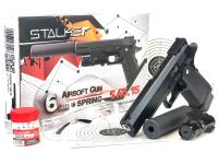 Пистолет страйкбольный Stalker SA5.1S Spring - это пружинно-поршневой пистолет, созданный на основе пистолета Hi-Capa 5.1. Он использует пластиковые шарики диаметром 6 мм в качестве боеприпасов и может использоваться для игры в страйкбол или для тренировок. Пистолет оснащен механическим магазином на 16 шариков, что обеспечивает длительную стрельбу без необходимости перезарядки. В качестве источника энергии выступает пружина, взводимая передёргиванием затвора. Начальная скорость выстрела достигает 80м/с. Металлическая конструкция обеспечивает долговечность и прочность оружия. Рукоять пистолета имеет эргономичную форму, обеспечивая хороший захват и удобство в работе с оружием. В комплекте имеется глушитель и лазерный целеуказатель. Пистолет страйкбольный Stalker SA5.1S Spring - это отличный выбор для новичков, кто ищет качественное и надежное оружие для игры в страйкбол или для тренировок. Его высокое качество изготовления, удобство в использовании и стильный дизайн делают его популярным среди любителей страйкбольного оружия. Пистолет страйкбольный Stalker SA5.1 Spring+ПБС (Hi-Capa 5.1) 6мм комплект входит: Пистолет пневматический Stalker SA5.1 Spring (аналог Hi-Capa 5.1)+имит.ПБС+ЛЦУ,6мм,мет.корп,маг.16ш Шарики пластиковые 6мм  250 шт Очки стрелковые Мишени 5 шт
